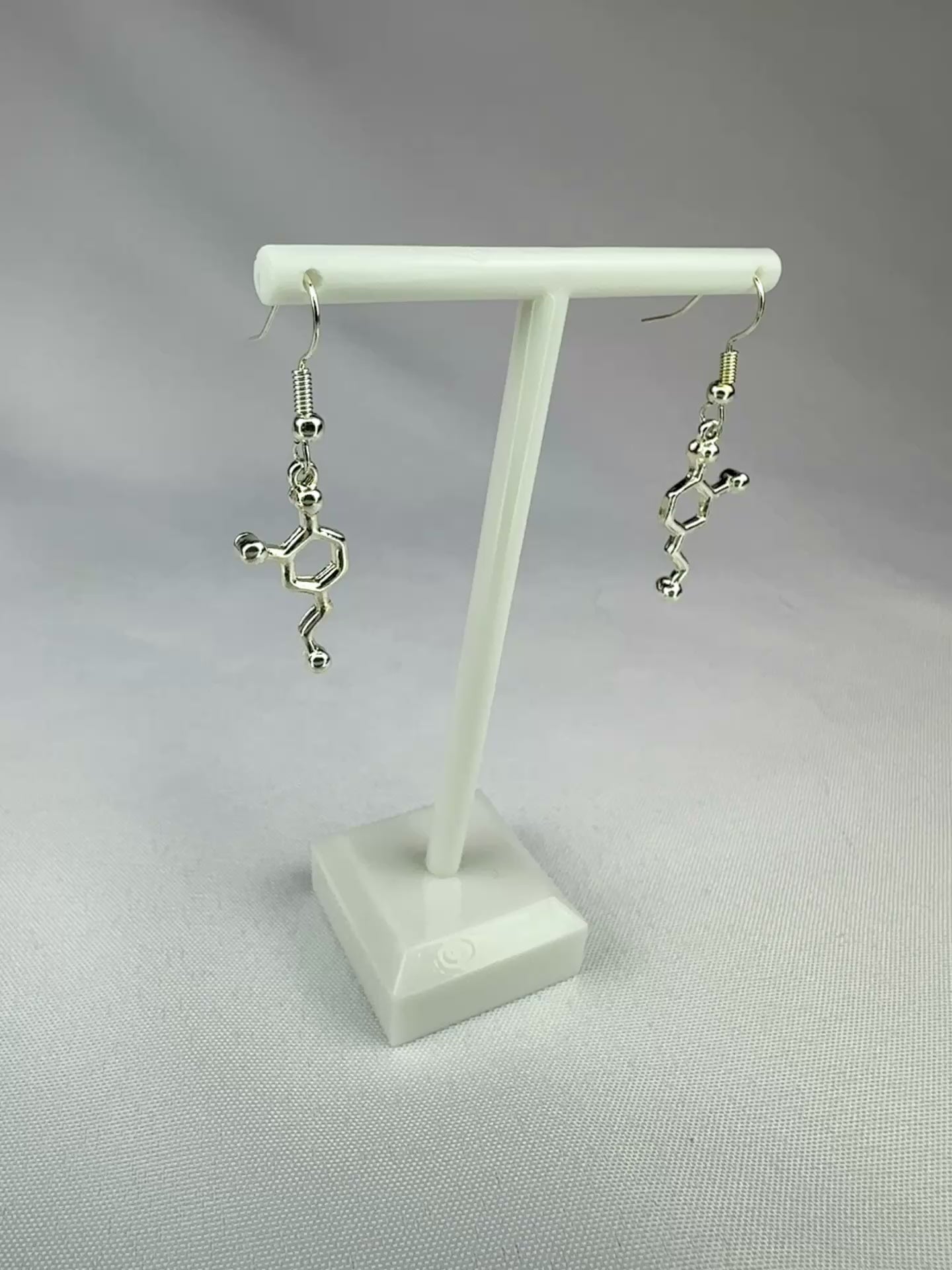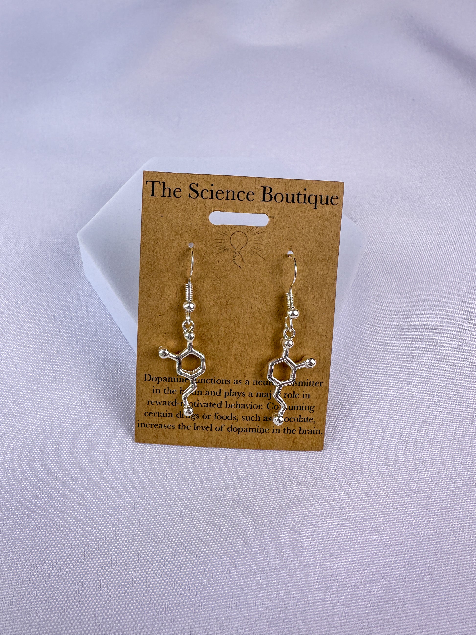Dopamine is often called the “feel-good” neurotransmitter, responsible for motivation, pleasure, and reward. These Dopamine Molecule Earrings are perfect for neuroscientists, psychology buffs, and anyone fascinated by the chemistry of happiness! Whether you're celebrating a big win or just looking for a serotonin boost, these earrings are a stylish reminder of what drives joy.