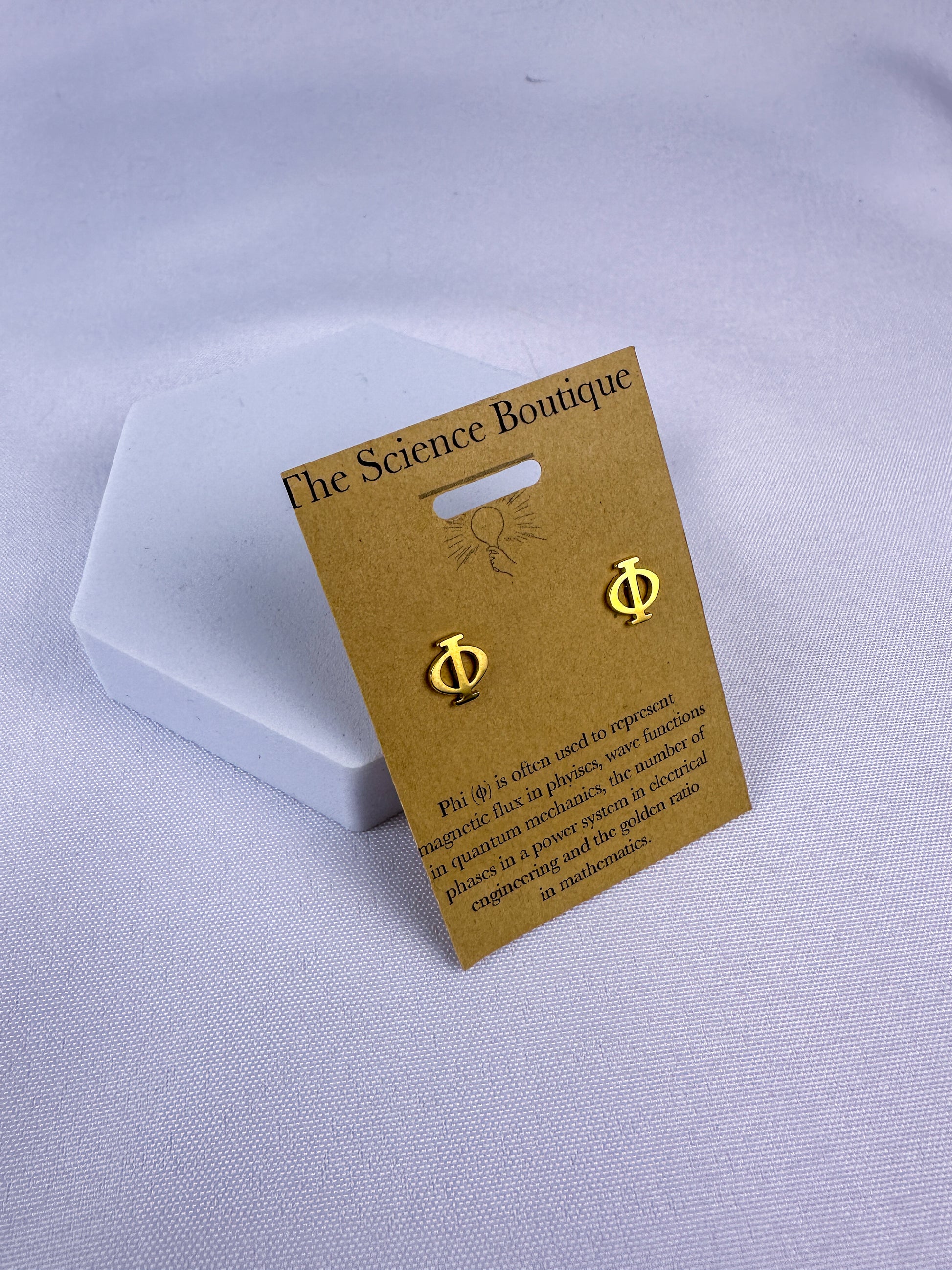 The Greek letter Phi (Φ) is more than just a mathematical constant—it’s used across physics, engineering, and biology. It represents magnetic flux in electromagnetism, phase transitions in wave mechanics, and even the work function in quantum physics. These elegant studs celebrate Phi’s deep connection to the scientific world.