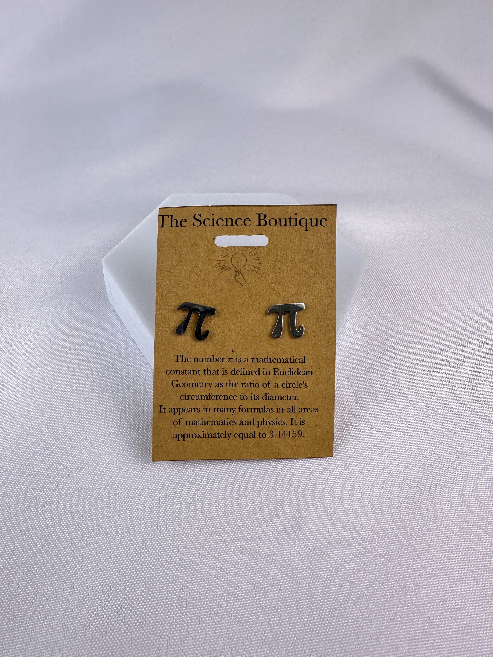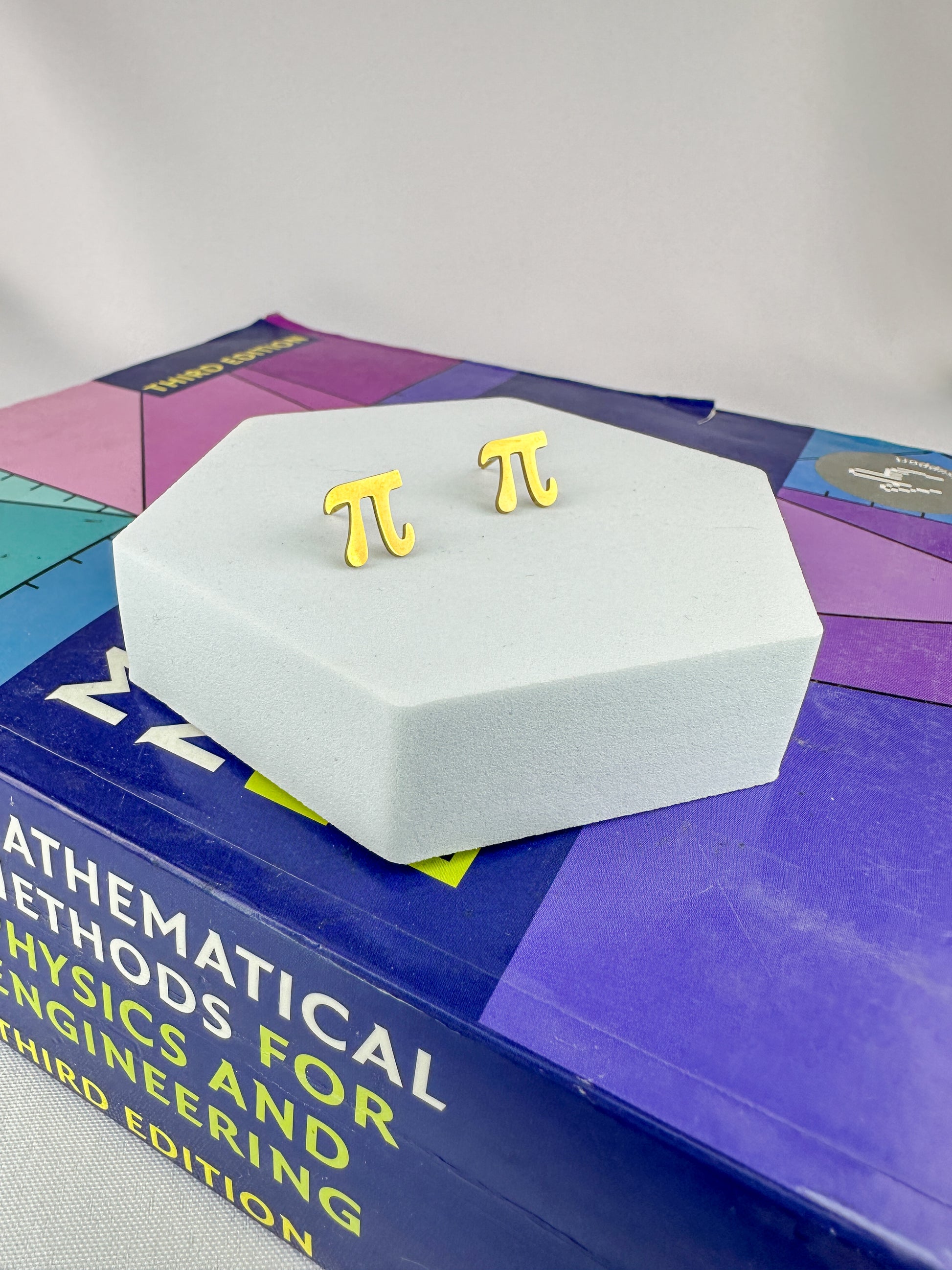 Pi (π) is the ratio of a circle’s circumference to its diameter, an irrational number that appears in countless scientific and engineering calculations. These studs celebrate the never-ending nature of mathematics.