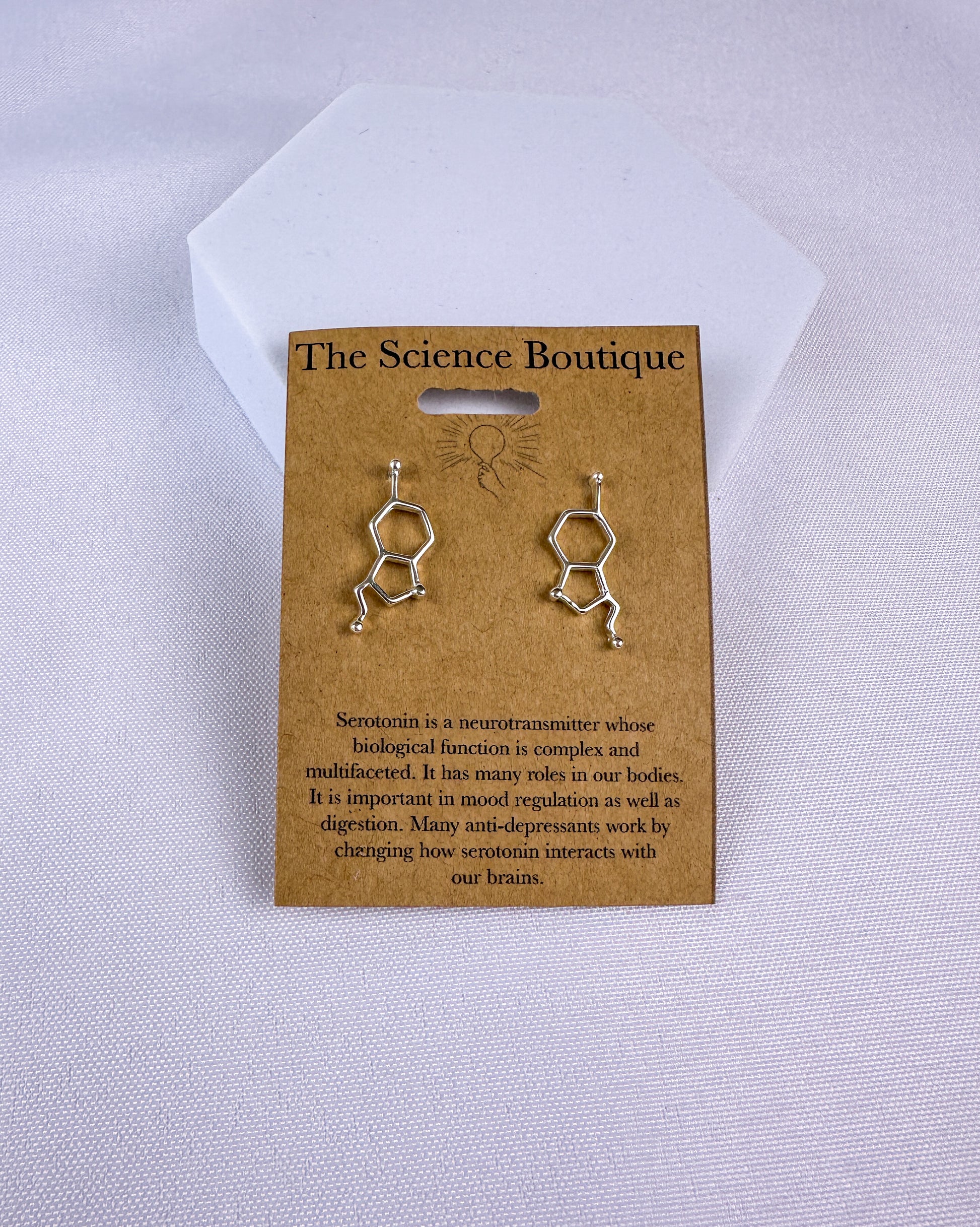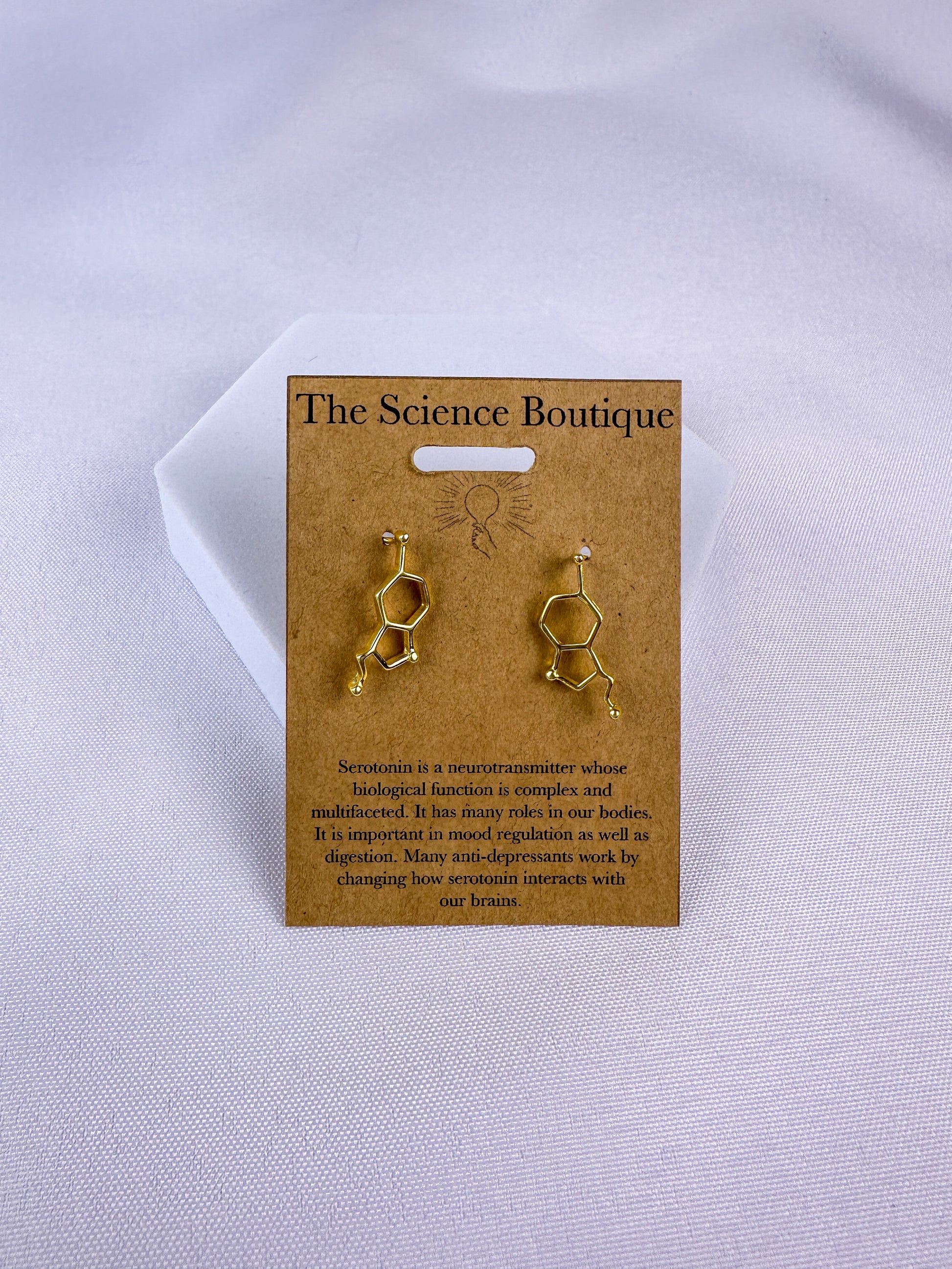 Serotonin (C₁₀H₁₂N₂O) is the neurotransmitter often associated with happiness, mood regulation, and overall well-being. These Serotonin Molecule Earrings are a perfect way to celebrate the science of feeling good! Whether you're passionate about mental health, neuroscience, or just love a fun conversation starter, these earrings make a thoughtful and stylish addition to any collection.