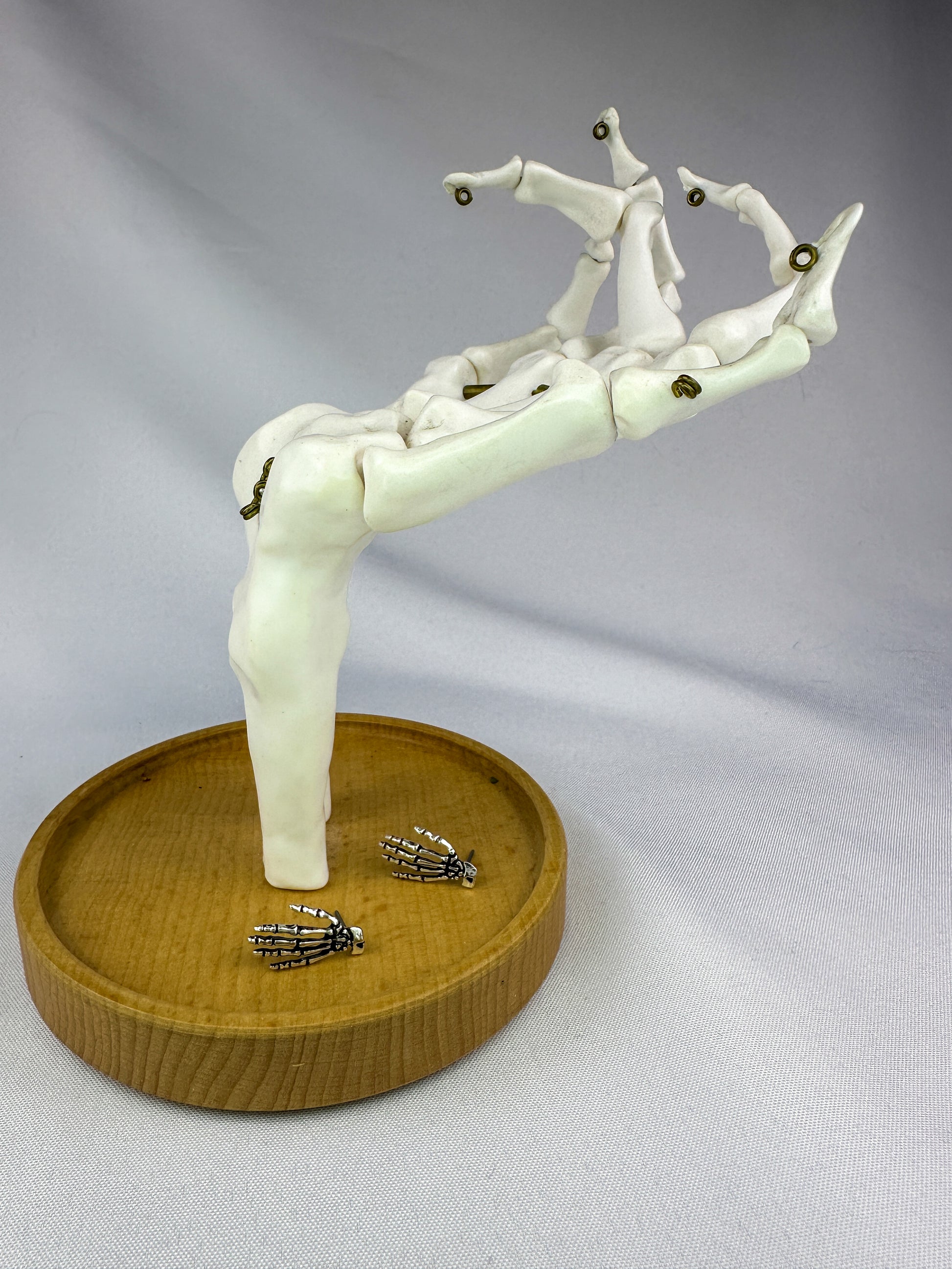 These tiny, detailed skeleton hand studs are a perfect nod to forensic science, anatomy, and Halloween fun! Whether you love osteology, medical studies, or just spooky aesthetics, these earrings are a stylish statement.