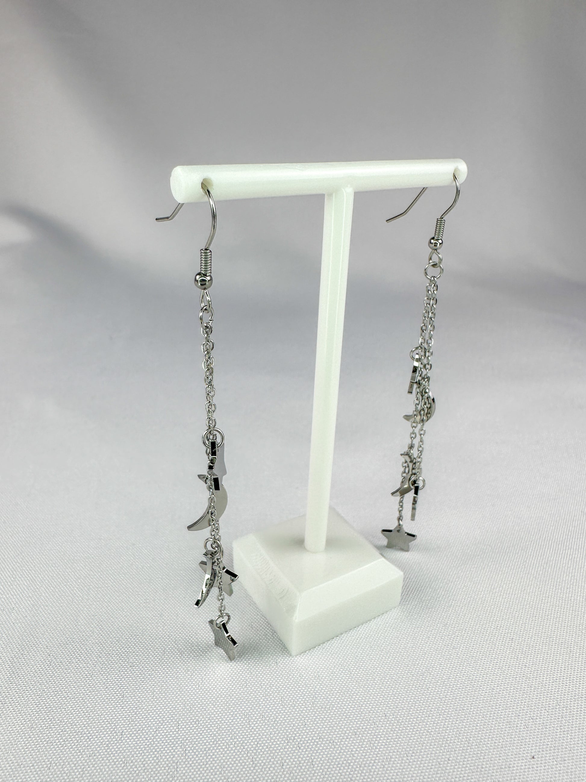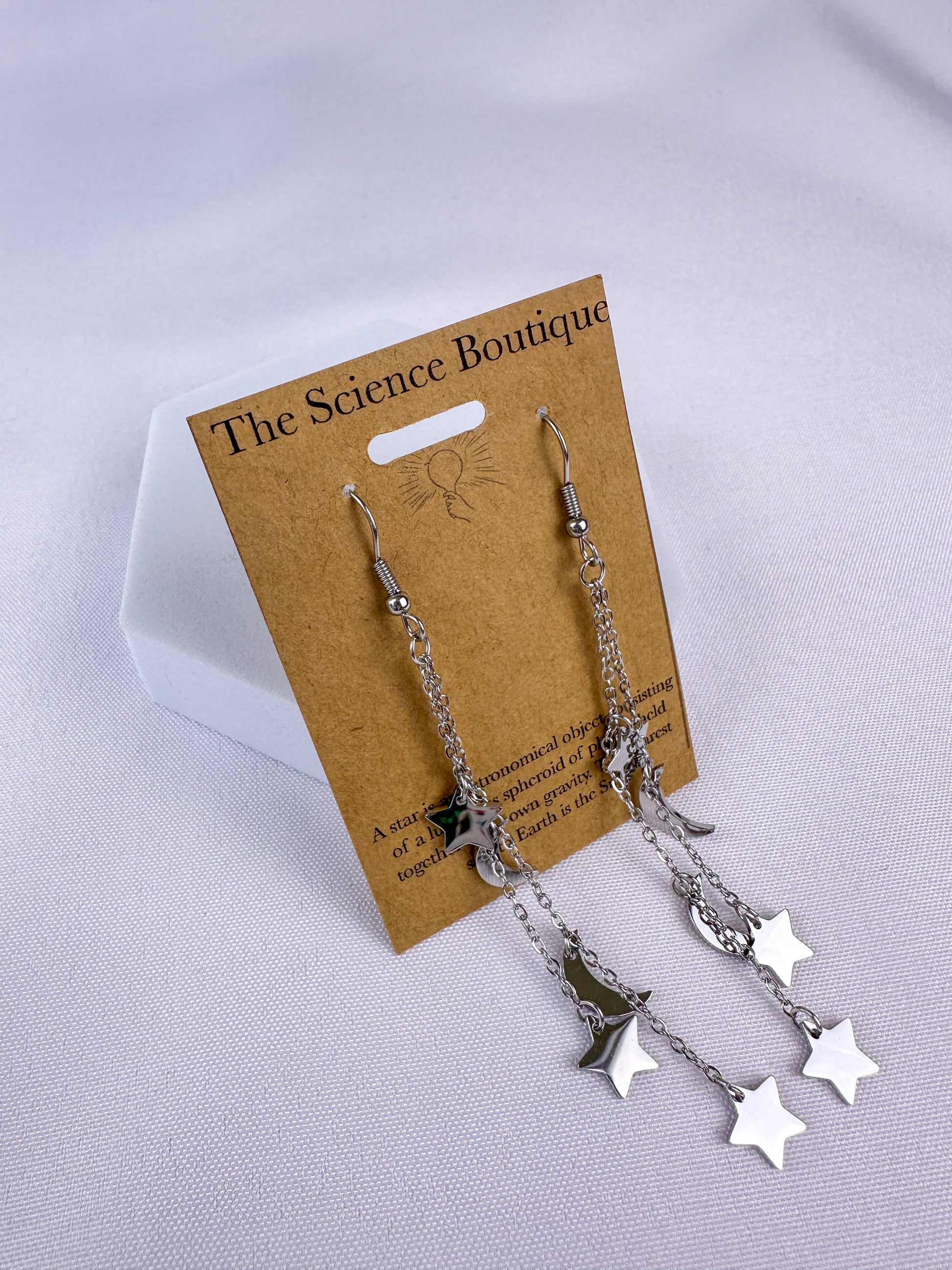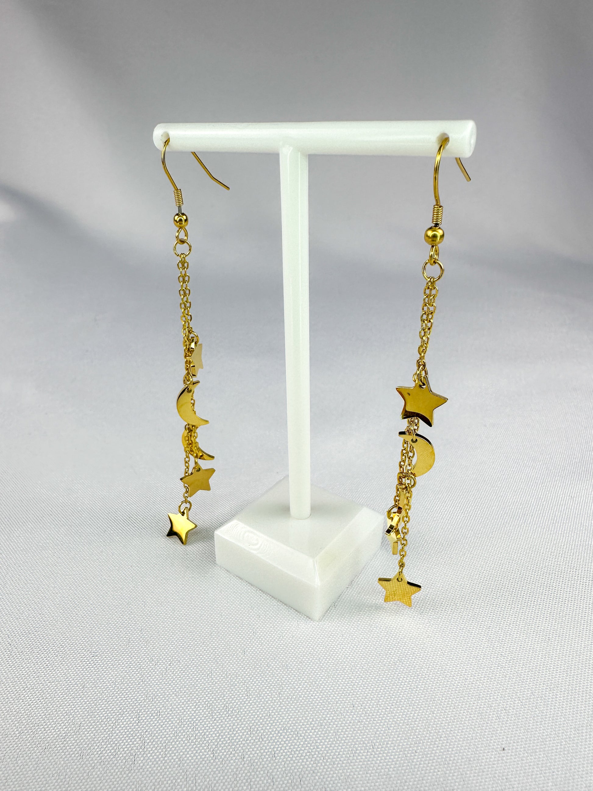 The Moon and stars have guided human navigation and inspired scientific discoveries for millennia. These elegant dangle earrings capture the beauty of the night sky and our fascination with the cosmos.